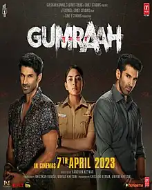 Gumraah (transl. Astray) is a 2023 Indian Hindi-language crime thriller film directed by Vardhan Ketkar and produced by T-Series Films and Murad Khetani's Cine1 Studios. The film stars Aditya Roy Kapur in a dual role along with Mrunal Thakur and Ronit Roy. It is a remake of the 2019 Tamil film Thadam.[4] It revolves around a murder investigation which becomes complicated after the police discover two lookalike suspects.