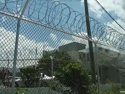 At the establishment of the new court in 1974, the Manley administration quickly build a new Gun Court compound (17°59′5″N 76°46′43″W) at South Camp Road, Kingston, with both court and prison facilities. The Gun Court Prison was defended by guard towers and barbed wire, earning it the nickname of "Jamaica's Stalag 17",[3] and the walls were painted bright red "to show that it [is] dread".[18] It held 320 inmates in 1986.[13] The courtrooms housed the High Court and Resident Magistrate's divisions of the Gun Court until 1999, when they were converted to a "Peace Centre" dedicated to pursuing community mediation of disputes. The High Court division now sits in the Supreme Court building, and the Resident Magistrate's division sits in the Half Way Tree Courthouse. The prison itself remains in operation as the South Camp Adult Correctional Centre,[19] housing inmates convicted by the Gun Court.[20]