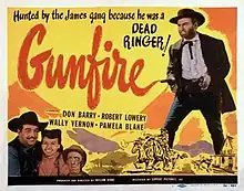 Gunfire is a 1950 American western film directed by William Berke and starring Don Barry, Robert Lowery and Pamela Blake.[1] It was made as a second feature and released by Lippert Pictures while Exclusive Films distributed it in Britain. It was also known by the alternative title Frank James Rides Again.[2]