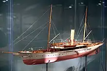 In 1903, Gunilda was purchased by oil baron William L. Harkness of Cleveland, Ohio. Harkness was a member of the New York Yacht Club. When he purchased Gunilda, she was officially registered in New York City and became the new flagship of the New York Yacht Club. In 1903, Gunilda's home port was Philadelphia, Pennsylvania, however, in 1904, it became New York City.[14] Under the ownership of Harkness, Gunilda visited several parts of the world, making multiple trips around the Atlantic Ocean and the Caribbean.[3][8][10][13] In 1910, Harkness brought Gunilda to the Great Lakes to perform an extended cruise.[3][15]