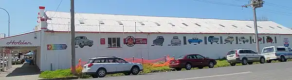 A feature of the town is Bailey's Garage, once a very busy General Motors-Holden dealership. One long exterior wall carries large images of nine notable Holden models.[5]