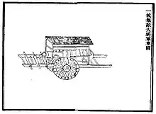 According to the Shenqi Pu, 1598, an infantry brigade of 2,699 men was to be equipped with 1,080 muskets and 216 bows. A cavalry brigade of 2,988 men was to be equipped with 1,152 bows, 432 muskets, and 60 "crouching tiger" cannons. A wagon brigade of 3,109 men was equipped with 145 wagons, eight large cannons, 256 swivel guns, and 512 muskets. The Shenqi Pu shows the soldiers using detached wagons as walls behind which they fire from through holes using muskets. Five men worked to reload and fire the musket in rotation.[80] The Manchus also used something similar in their war against the Ming dynasty. They had rampart platforms on wheels, on which stood two soldiers firing muskets.[81]