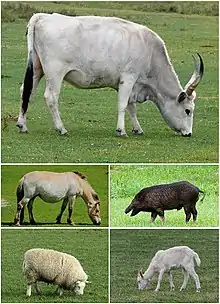 Also important to the transition from hunter-gatherer to city-dwelling agrarian societies was the presence of "large" domesticable animals, raised for meat, work, and long-distance communication. Diamond identifies a mere 14 domesticated large mammal species worldwide. The five most useful (cow, horse, sheep, goat, and pig) are all descendants of species endemic to Eurasia. Of the remaining nine, only two (the llama and alpaca both of South America) are indigenous to a land outside the temperate region of Eurasia.