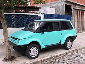 The Gurgel BR-800 was a Brazilian city car produced by Gurgel between 1988 and early 1992. The project started under the acronym CENA, meaning "National Economical Car" ("Carro Econômico NAcional", in Portuguese), designed to be essentially a small car for urban daily use. It received great attention and good reviews from critics, regarding the mechanic solutions, comfort, drivability and stability.[1] When it was introduced in September 1987, the car was named the Gurgel 280 but by the time sales started it was changed to the BR-800.[2] The car could only be purchased if the buyer also bought 750 shares in Gurgel, making it considerably more expensive than the much bigger and more capable Chevrolet Chevette, the then cheapest new car available in Brazil.[3]
