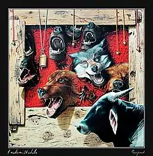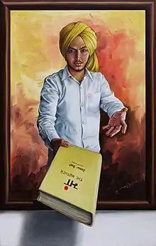 In his career Gurpreet Singh has painted hundreds of paintings where his main focus is on Sikh History. He has done several series such as on bulls or on meditation. Gurpreet Singh, has been awarded the state award for painting by the Punjab Lalit Kala Akademi.[1] He was given Professional Category's Award for his paintind "Indomitable".[2] He said “In this painting I have shown a bull symbolising an honest and strong common man. He cannot be dominated by evil forces of society. Some barking and howling wild animals are shown at the back as a symbol of evil forces. And old wooden frame depicts the orthodox social structure,” he said.