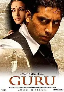 Guru is a 2007 Indian Hindi-language drama film directed and co-written by Mani Ratnam. It stars Mithun Chakraborty, Abhishek Bachchan, Aishwarya Rai Bachchan, R. Madhavan, Vidya Balan and Roshan Seth. The score and soundtrack for the film was composed by A. R. Rahman. Incidentally, Mithun Chakraborty also previously acted in a 1989 film of the same name in Hindi, as well as a 2003 film of the same name in Bengali.