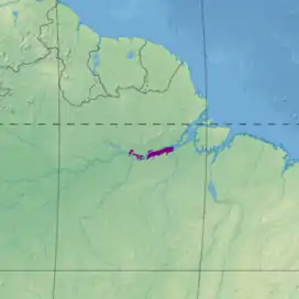 The Gurupa várzea ecoregion is named after the Ilha Grande de Gurupá, an alluvial island in the mouth of the Amazon.[1] The várzea extends along the lower Amazon River from the mouth of the Tapajós down to the mouth of the Xingu River. It has an area of 984,195 hectares (2,432,000 acres).[2] The Tapajós–Xingu moist forests lie to the south and the Uatuma–Trombetas moist forests to the north. The Monte Alegre várzea is upstream and the Marajó várzea is downstream along the Amazon.[3]
