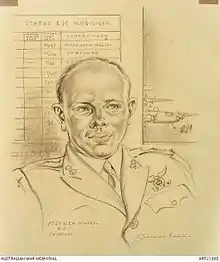 Following the attack on Broome and his evacuation mission, Winckel was sent to Moruya, New South Wales, where he joined No. 18 (Netherlands East Indies) Squadron RAAF, which had been formed on 4 April 1942.[9] From Moruya he patrolled the Eastern Australian shore. At the end of May 1942, a Japanese midget submarine attacked Sydney Harbour. Winckel and his fellow pilots were subsequently ordered to patrol for submarines. During a patrol on 5 June 1942, Winckel attacked what he believed was a Japanese submarine in his B-25 Mitchell bomber.[9] The perceived success was welcomed after the recent submarine attack and Winckel was personally congratulated by Australian Prime Minister John Curtin.[10] This was one of a large number of claimed successes against Japanese submarines during this period. However, postwar research indicates that no Japanese submarines were sunk off the Australian east coast during the war.[11] Winckel spent the rest of the war with No. 18 Squadron and served from MacDonald Airfield and Batchelor Airfield in Northern Australia as a pilot on operations, and as an instructor working in Canberra. During the war, he was nicknamed "Lucky Bill" by his colleagues and "Babyface Killer" by the Japanese.[6]