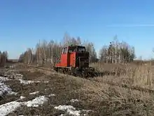 The Gusevskoye peat railway is located in Vladimir Oblast, Russia. The peat railway was opened in 1920, and has a total length of which 25 kilometres (16 mi) is currently operational; the track gauge is 750 mm (2 ft 5+1⁄2 in).