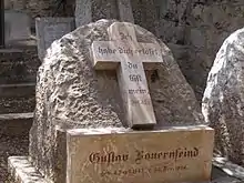 During his lifetime he was the most popular Orientalist painter of Germany, but would fade into irrelevance after his death. However, since the early 1980s, Bauernfeind was gradually rediscovered, with his paintings appearing at auctions with high prices. Thus, his oil painting The Wailing Wall was sold at Christie's in London for the equivalent of €326,000 in 1992. The same painting would reach at Sotheby's in London the equivalent of €4.5 million in a later auction in 2007.[2] In 1997, another oil painting of Bauernfeind, The Port of Jaffa, was sold at the Van Ham Kunstauktionen in Cologne for 1,510,000 DM, thus becoming the most expensive 19th-century painting ever sold in Germany.[3]