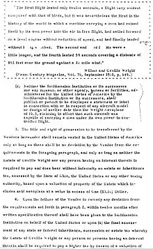 In 1963, reserve Air Force major William O'Dwyer discovered photographs in the attic of a Connecticut house showing a 1910 Whitehead "Large Albatross"-type biplane aircraft at rest on the ground. The Connecticut Aeronautical Historical Association (CAHA) asked him and his 9315th U.S. Air Force Reserve Squadron to investigate whether Whitehead had made powered flights.[44] O'Dwyer continued his research for years and became convinced that Whitehead did fly before the Wright brothers. Former CAHA president Harvey Lippincott said in 1981 that Whitehead "may have flown 100 to 200 feet, 10 to 15 feet off the ground. This is confirmed by the witnesses that we have interviewed and talked with, and this seems reasonable for the state of the art in aviation at that time."[45] O'Dwyer later contributed interviews of reputed flight witnesses to a second book by Stella Randolph The Story of Gustave Whitehead, Before the Wrights Flew, published in 1966.[46] O'Dwyer and Randolph also co-authored History by Contract, published in 1978, which criticized the Smithsonian Institution for signing an agreement with the estate of Orville Wright, requiring the Smithsonian to credit only the 1903 Wright Flyer for the first powered controlled flight.[47]