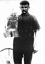 He lost an eye in a factory accident and also suffered a severe blow to the chest from a piece of factory equipment, an injury that may have led to increasing attacks of angina. Despite these setbacks, he exhibited an aircraft at Hempstead, New York, as late as 1915. He continued to work and invent. He designed a braking safety device, hoping to win a prize offered by a railroad. He demonstrated it as a scale model but won nothing. He constructed an "automatic" concrete-laying machine, which he used to help build a road north of Bridgeport. These inventions brought him no more profit than did his airplanes and engines.[40] Around 1915 Whitehead worked in a factory as a laborer and repaired motors to support his family.[41]