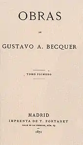 - One or more of the preceding sentences incorporates text from a publication now in the public domain: Chisholm, Hugh, ed. (1911). "Bécquer, Gustavo Adolfo". Encyclopædia Britannica. Vol. 3 (11th ed.). Cambridge University Press. p. 611.