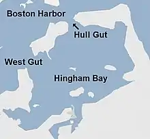 A gut is a narrow coastal body of water, a channel or strait, usually one that is subject to strong tidal currents flowing back and forth.[1][2][3] The term is also used in some places for a small creek.