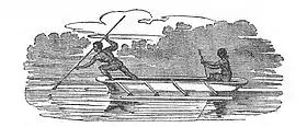 One of the members of the crew, Joseph Banks's botanical draughtsman Sydney Parkinson, set down in his journal (published posthumously as A Journal of a Voyage to the South Seas) a sketch of the local people. He described them as diminutive and small boned, agile, their skin painted with red and white ochre, with wood-sooty skin and generally given to shaving their hair off. They practised nose piercing. Women wore a feather headdress. They used wood from the ficus riduola as a rasp to sharpen their spears, which were tipped with bone. Their languages was quite mellifluous, with clear enunciation.[16]