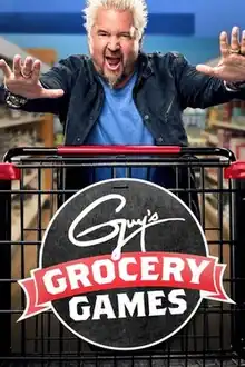 Guy's Grocery Games (often nicknamed Triple G) is an American reality-based cooking television game show hosted by Guy Fieri on Food Network.[1] Each episode features four chefs competing in a three-round elimination contest, cooking food with ingredients found in a supermarket grocery store ("Flavortown Market") as Fieri poses unusual challenges to them. The winning chef of the episode can collect up to $20,000 in a shopping spree bonus round. The show often features chefs from Diners, Drive-Ins, and Dives, another show hosted by Fieri. The show Dessert Games was a short-lived spin-off.[2]