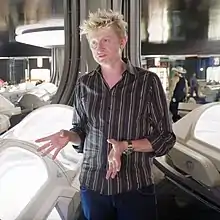 ![]() Dyas speaking on the set of Columbia Pictures "Passengers" | |