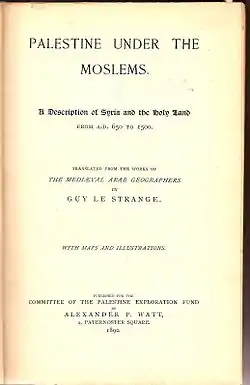 - Le Strange, Guy (1890). Palestine Under the Moslems: A Description of Syria and the Holy Land from A.D. 650 to 1500. London: Committee of the Palestine Exploration Fund. OCLC 1004386.