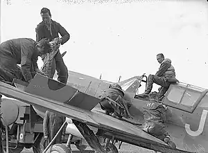![]() Newton in his Kittyhawk, which is being rearmed, November 1942 | |