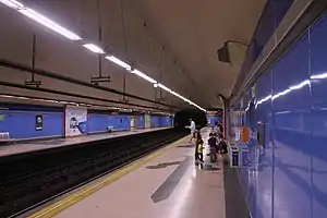 Guzmán el Bueno is a station on Line 6 and Line 7 of the Madrid Metro located underneath the Avenida de la Reina Victoria between the neighborhoods of Vallehermoso in Chamberí district and Ciudad Universitaria in Moncloa-Aravaca district in Madrid. It is in fare Zone A.[1][2] The station was named after the medieval Spanish nobleman Alonso Pérez de Guzmán, known as Guzmán el Bueno ("Guzmán the Good").