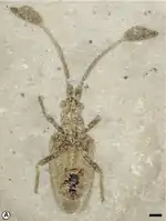 - Wappler, T.; Guilbert, E.; Labandeira, C.C.; Hörnschemeyer, T.; Wedmann, S. (2015). "Morphological and Behavioral Convergence in Extinct and Extant Bugs: The Systematics and Biology of a New Unusual Fossil Lace Bug from the Eocene". PLOS ONE. 10 (8): 1–17. Bibcode:2015PLoSO..1033330W. doi:10.1371/journal.pone.0133330. PMC 4534043. PMID 26267108.