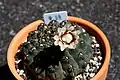 It is a spherical cactus growing to 5 cm (2 in) tall by 7 cm (3 in) wide, with ribbed stems bearing brown spines and white, daisy-like flowers in summer. In cultivation, where temperatures fall below 10 °C (50 °F) it requires the protection of glass.[1]