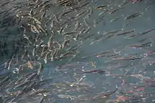 The Qinghai Lake has a salinity of about 14 parts per thousand, meaning that the water is brackish.[3] From April to July adults of the lake population migrate 40–50 km (25–31 mi) to nearby freshwater streams to spawn. These include the Harge, Goncha, Chang Ji, and Buha rivers.[9] Much like salmon, they seek sandy gravel banks with slower currents to build nests.[9] When fish return to the lake, their electrolyte levels increase quickly to concentrations similar to Lake Qinghai's salinity, while urine flow, metabolic rate, and oxygen consumption all decrease drastically.[5] This is thought to represent the reduced osmoregulatory and metabolic costs of living in Lake Qinghai which make returning after spawning and reproduction advantageous. Young fish are thought to return to the lake after overwintering in their spawning streams.[9]
