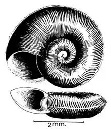 | Drawing of apical and apertural view of the shell of Gyraulus costulatus. | |