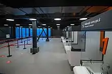 Runway 02 is equipped with an ILS CAT I, enabling aircraft operations in low ceiling (60 meters) and visibility (800 meters).[4] The airport is also equipped with a new air traffic control tower and a boiler room, as well as a new arrivals area including five passport control booths and an additional baggage carousel. The airport features a Dufry duty-free shop after security in the departures area. Runway resurfacing works were completed on September 16, 2021, as part of a large-scale modernisation program for the airport.