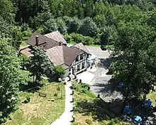 In 1884 The German Alpine Club branch at Asch (now Aš) built an Alpine Club house for hikers, the Hainberghaus. The building was seized in 1945 and renamed the Horská chata Háj. The interior was burned out in 2009 and the building has fallen into decay.[5]