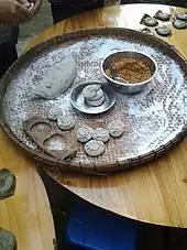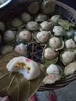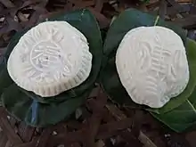 - Glutinous rice flour, clean jackfruit leaves, skinless green bean,[3] peach-shaped mould are prepared.
