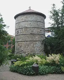 The windmill of the Hôpital-Général de Québec is located outside the main hospital building.