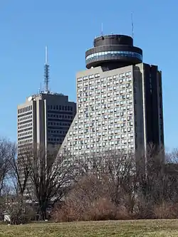 Hôtel Le Concorde Québec is a skyscraper hotel in Quebec City, Quebec, Canada. It contains 405 rooms over 26 floors. Le Concorde is known for its revolving restaurant, Ciel! (formerly L'Astral), which is situated on the top floor of the hotel and offers a 360-degree view of Quebec City and the Saint Lawrence River. The hotel is located in the historic restaurant district La Grande Allée and behind is the historic national park The Plains of Abraham (French: Les plaines d'Abraham) and The Battlefields Park (French: Parc des Champs-de-Bataille).