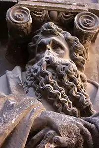 Historians are still debating the age of this emblematic portal of the Toulouse Renaissance: dated 1538 and attributed to Nicolas Bachelier for some, from the beginning of the 17th century and from the workshop of Pierre Souffron for others, a more recent publication now suggests the decade 1550 and a resemblance with engravings of the fireplaces of the Château de Madrid (destroyed).[2][3][4]