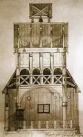 The earliest existing historical records of the church date back to the year 1327, but the church was not built that year. The first Høre church was a wooden post church (a church with earth-bound posts standing directly on the ground) that was built in the 11th century. Over 100 years later, around the year 1179, the old church was torn down and a new wooden stave church was constructed on roughly the same site. The new church had a long church design. Through a dendrochronological study of the church, the wood is dated to the years 1178-1179. A runic inscription upon the medieval pulpit reads: "Þá, um þat sumar [létu] þeir brœðr Erlingr ok Auðun hôggva till kirkju þessar, er Erlingr ja[rl fe]ll í Niðarósi" which translates to The brothers Erling and Audun had the timber for this church felled, the summer that Erling Jarl fell in Nidaros. This refers to the Battle of Kalvskinnet in 1179, which supports the dendrochronological evidence that the church was built in 1179. There are also several other runic inscriptions, and items with runic inscriptions in the church. There are also a number of graves under the church, including those of children, some of which pre-date the present church which lends support to the fact that a previous church stood on roughly the same site before the present church. Over the years, the church was repaired several times including in the 1660s, 1680s, 1724, and 1740.[3][4][5]