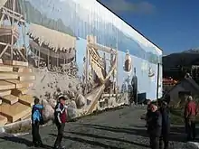 The Høylandsbygd shipping mural is a wall mural located in Høylandsbygd in Kvinnherad. It is the biggest painted mural in the world, with the larger of the two painted walls being 80 metres long and 16 metres tall. The total area of both paintings is 1,500 m2.[1][2][3]