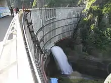 Hōheikyō Dam (豊平峡ダム, Hōhei-kyō Damu) is a concrete Arch dam in Sapporo, Hokkaidō; Japan. It dams the Toyohira River.[1] It is situated in Toya National Park. The dam was created for Irrigation as well as Flood control. The road leading to the dam has been closed off for regular car use, instead Hybrid electric buses are operated so the natural environment is protected.[2] The dam's lake is known as Jozan Lake (定山湖),
