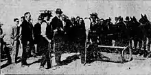 In 1924, Wilkinson led the effort to get a main line railway through Phoenix. He was the president of the Tidewater Association, which spearheaded the project.[57] The line would need to have had the Southern Pacific and El Paso and Southwestern railways merge, which needed approval from the Commerce Commission in Washington, D.C.[58] The hearing took place in September, and Wilkinson was part of the Arizona contingent which traveled to the U.S. Capitol to argue in favor of the proposal. The requested merger was approved.[59][60] Construction on the new line commenced in January 1925 near Picacho, with Wilkinson, along with F. J. Elliot, president of the Phoenix Chamber of Commerce, throwing out the first shovelful of dirt.[61] The rail line was completed on June 6, 1926, when the last rail was laid about 72.5 miles (116.7 km) west of Hassayampa, linking the two sets of tracks being laid. Freight trains began operating over the line on June 17, and the passenger train service began on October 15.[62]
