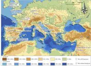 - Moncel, M.-H.; Santagata, C.; Pereira, A.; Nomade, S.; Voinchet, P.; Bahain, J.-J.; Daujeard, C.; Curci, A.; Lemorini, C.; Hardy, B.; Eramo, G.; Berto, C.; Raynal, J.-P.; Arzarello, M.; Mecozzi, B.; Iannucci, A.; Sardella, R.; Allegretta, I.; Delluniversità, E.; Terzano, R.; Dugas, P.; Jouanic, G.; Queffelec, A.; d'Andrea, A.; Valentini, R.; Minucci, E.; Carpentiero, L.; Piperno, M. (2020). "The origin of early Acheulean expansion in Europe 700 ka ago: new findings at Notarchirico (Italy)". Scientific Reports. 10 (1): 13802. Bibcode:2020NatSR..1013802M. doi:10.1038/s41598-020-68617-8. PMC 7429832. PMID 32796860.