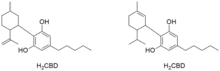 H2CBD (DiHydroCBD, hydrogenated CBD) are cannabinoids that were first synthesized by the Todd group in 1940 by catalytic hydrogenation of cannabidiol.[1]