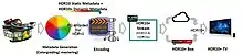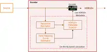 Live use cases are possible by delivering HDR10+ metadata in every frame. HEVC encoders generate and inject metadata on live content and mobile phones record video and create HDR10+[30] metadata in real-time during recording. Live encoding is detailed in the Live Encoder Workflow diagram and real time broadcast operations are supported at the point of transmission enabling a metadata-less broadcast operation.