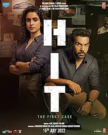 HIT: The First Case is a 2022 Indian Hindi-language action suspense-thriller film written and directed by Sailesh Kolanu, being a remake of his 2020 Telugu film of the same name.[4][5] The film is produced by Dil Raju Production and T-Series.[6] It stars Rajkummar Rao and Sanya Malhotra.[7][8] It was released on 15 July 2022.[9]