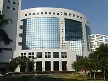 Donated by Shaw Foundation,[25] Shaw Auditorium is a 4-storey multi-purpose auditorium designed for concerts, lectures, musicals and visual productions. The building consists of three superimposed elliptic rings surrounding a sculptural core. The rings that blend into the architecture provide shade and rain protection around the building.[25] The auditorium is equipped with modular seating that can be adapted to allow for multiple arrangements, ranging from 850 to up to 1300 seats.[26] Its curved walls can function as a 360-degree projection screen, enabling audio-visual experiences.[27]