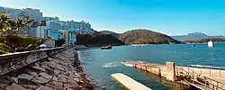 The university is largely a campus university, occupying a 60-hectare site at the northern part of Clear Water Bay Peninsula in Sai Kung District, New Territories, Hong Kong, overlooking Port Shelter in Tai Po Tsai. The campus layout and architecture is based on a master plan submitted jointly by Simon Kwan & Associates and Percy Thomas Partnership, the runner-up entry in an architectural competition held before the university was founded.
