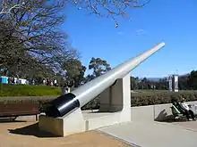 One of the cruiser's 8-inch gun barrels is on display outside the Australian War Memorial. A memorial to the ship's company, particularly those killed during World War II, was unveiled at Henley Beach, South Australia on 1 May 2011.[142]