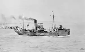 HMAS Beryl II (F. 71/BT) was an auxiliary minesweeper, later boom gate vessel, operated by the Royal Australian Navy (RAN) during World War II. She was launched in 1914 by Cochrane & Sons at Selby.[1] The ship operated as a trawler and was requisitioned by the RAN in 1939. She was returned to her owners on 24 May 1946 and was later scrapped in 1955.
