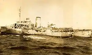 In June 1941, after commissioning in the RCN, Arrowhead joined the Newfoundland Escort Force and spent the majority of 1941 escorting convoys from St. John's to Iceland.[16] On 1 September 1941, the convoy escort groups (EG) were re-organised and the ship was made part of EG 18. In early September convoy SC 43 which EG 18 was escorting was detoured south to avoid the German wolfpack "Markgraf". On 18 September, the convoy SC 44 came under attack by German U-boats. Initial German attacks sank four of the merchant vessels. Arrowhead is one of three warships sent to reinforce the convoy, which prevent further sinkings.[19]
