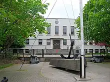 A memorial anchor with plaques on a concrete base, and nine-pounder guns were erected by HMCS Carleton. This memorial, which was unveiled on 6 May 1973 by Governor General Roland Michener, is dedicated to the Naval Reservists and the Naval Reserve in the fiftieth year of the Naval Reserve.[2]