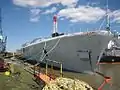 The pride of the Canadian Navy during the Cold War, these anti-submarine escorts were the first naval vessels conceived and built in Canada. Designed in 1948–1949, they influenced naval construction internationally with their smooth above-water surfaces and distinctive convex deck. They could also be sealed to protect crews against biological and radioactive threats. All seven St. Laurent-class ships were modified during the 1960s to carry helicopters and enhance their anti-submarine capability. Launched in 1953, the HMCS Fraser is the last surviving example of this innovative class of warship.— National Historic Site plaque