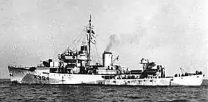 HMCS Thorlock was a modified Flower-class corvette that served in the Royal Canadian Navy during the Second World War. She fought primarily in the Battle of the Atlantic as a convoy escort. She was named for Thorold, Ontario. Her name was changed due to local preference.[2] After the war she was sold to the Chilean Navy.
